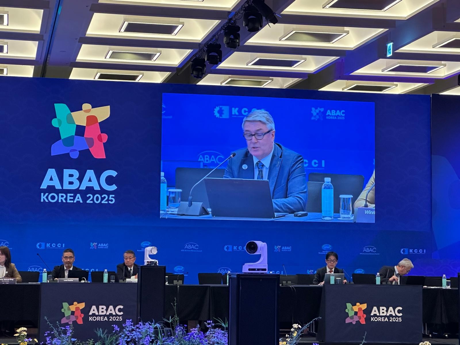 Brett presenting on climate change transition and the Greener Trade Framework as a member of ABAC’s Sustainability Working Group at the recent ABAC4 meeting in Busan, Korea. Image Supplied