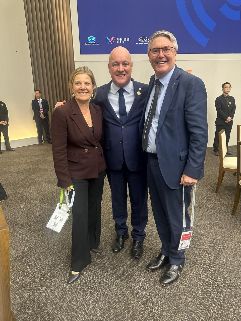 At the 2025 APEC Leaders Dialogue in Gyeongju, Korea with Prime Minister Rt Hon Christopher Luxon and ABAC colleague Michaela Browning from Australia. Image Supplied