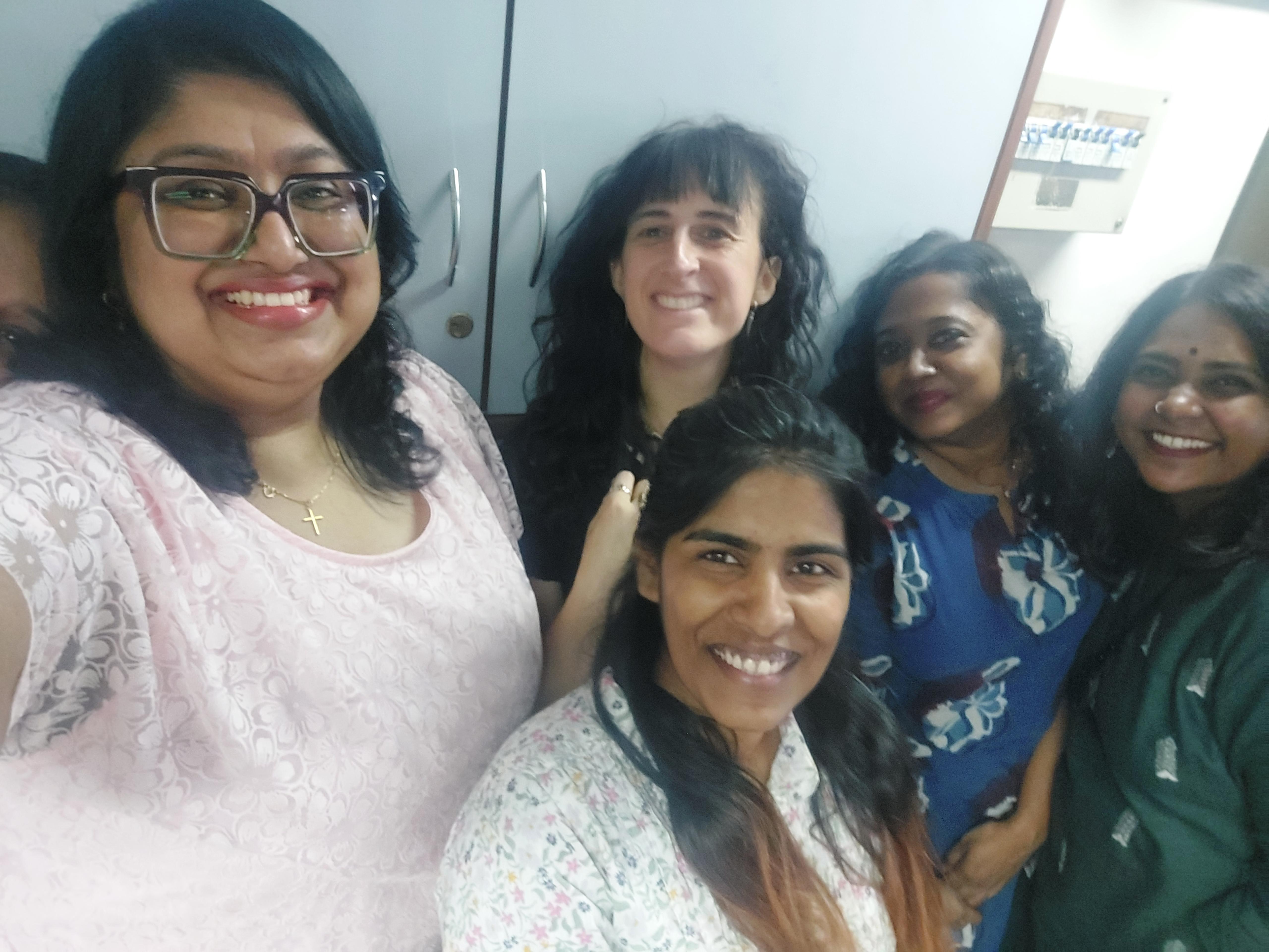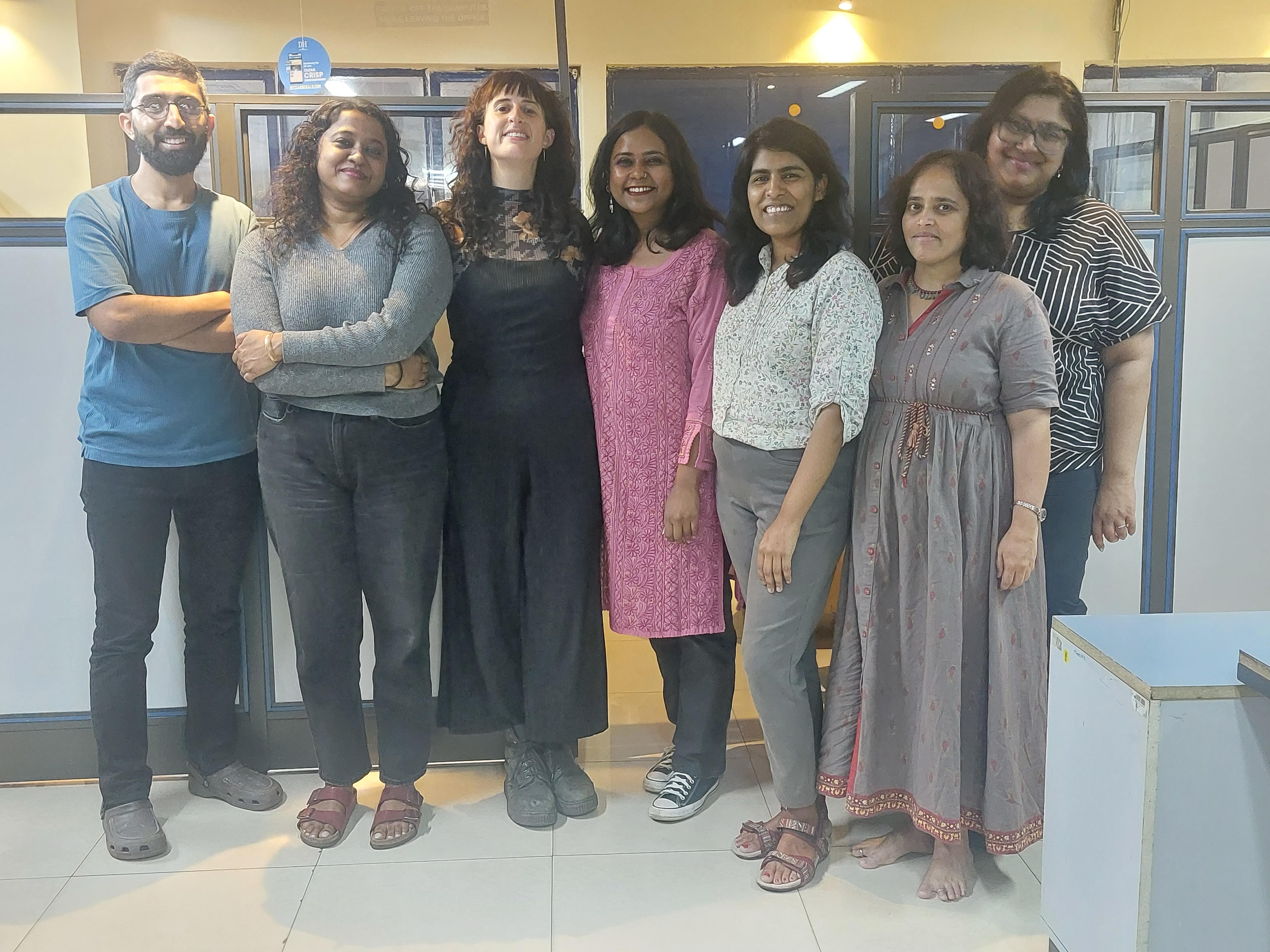 Caitlin in the Deccan Herald Newsroom with her colleagues. Image supplied/AMC