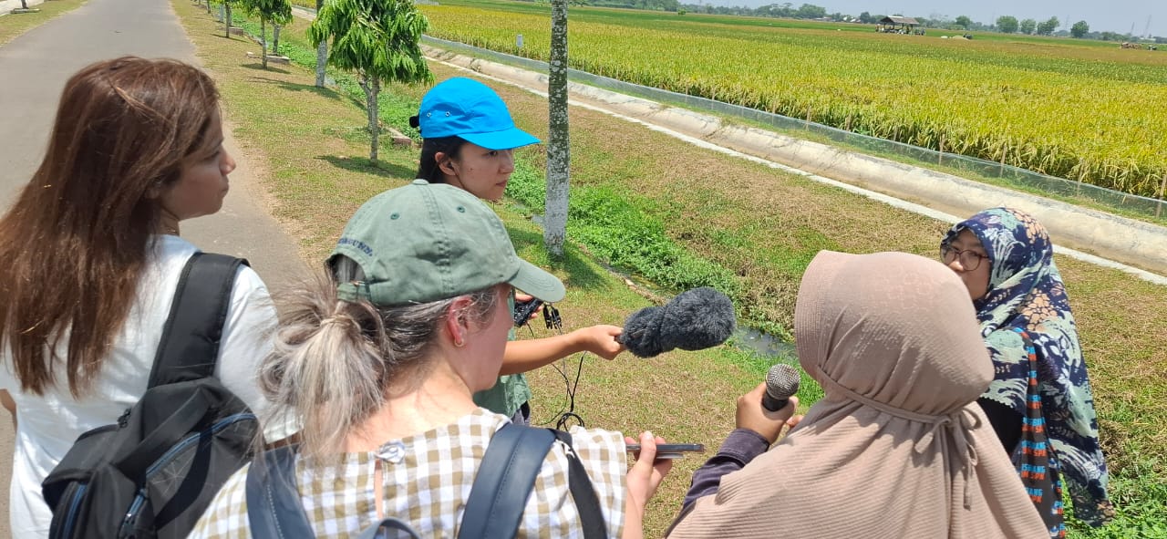 Newsgathering in the rice fields, on a visit to the Indonesian Center for Agricultural Development and Moderization of Rice. Image Supplied/AMC