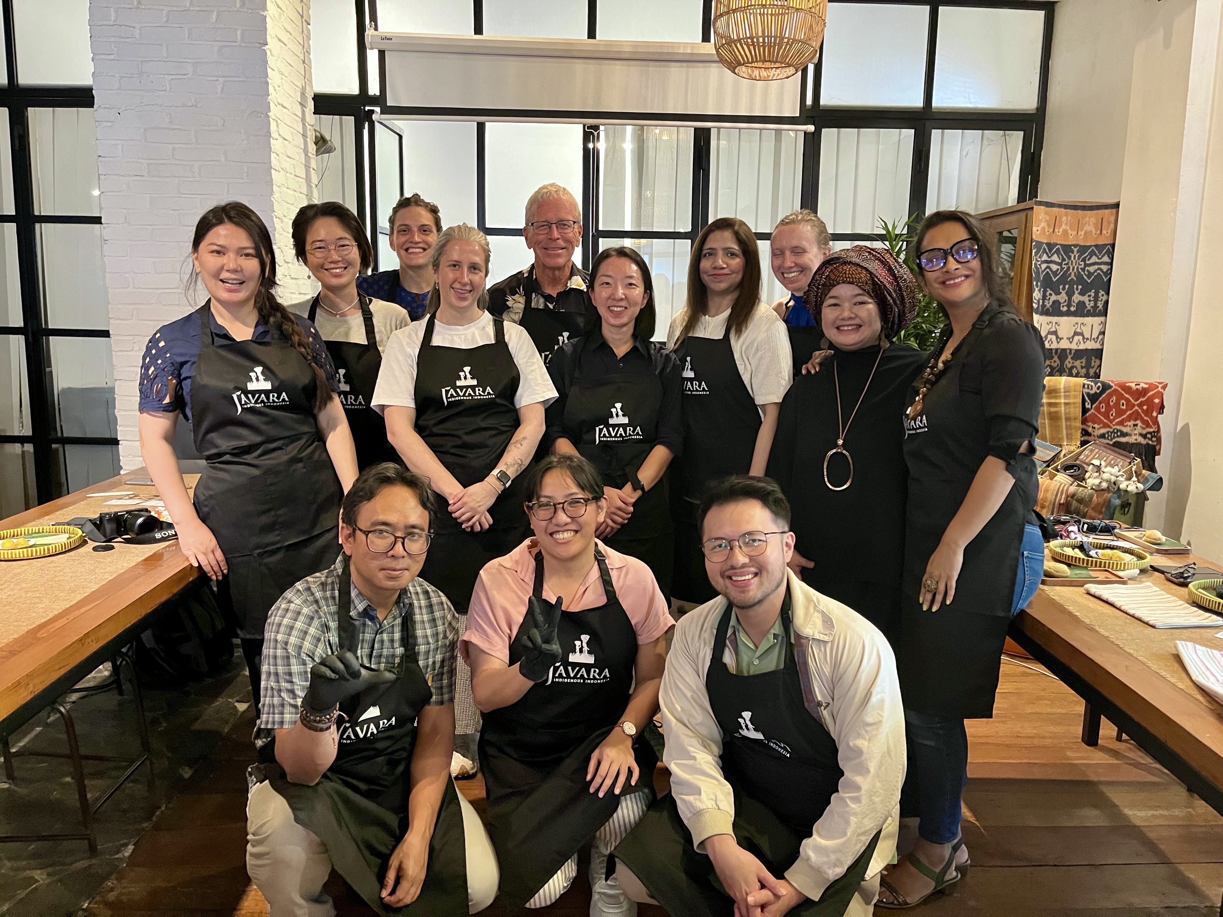 A group cooking class at Javara in Jakarta, joined by founder Helianti Hilman (second from right), who also serves as the Asia New Zealand Foundation’s Asia Honorary Adviser. Image: Supplied/AMC.