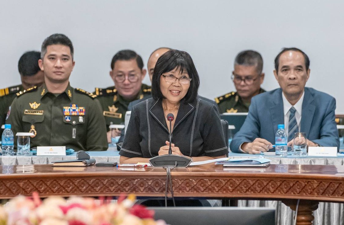 H.E. Mrs. Eat Sophea addresses military and officials at a diplomatic briefing, highlighting Cambodia's response to the 2025 border crisis fueling the "Buy Khmer" campaign. Image supplied/amc